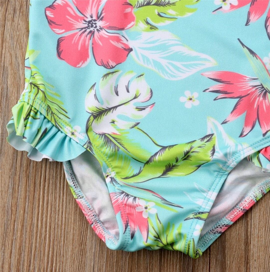 プチプラ★kids 花柄ワンショルダーフリルワンピース水着(green)子供用・キッズ