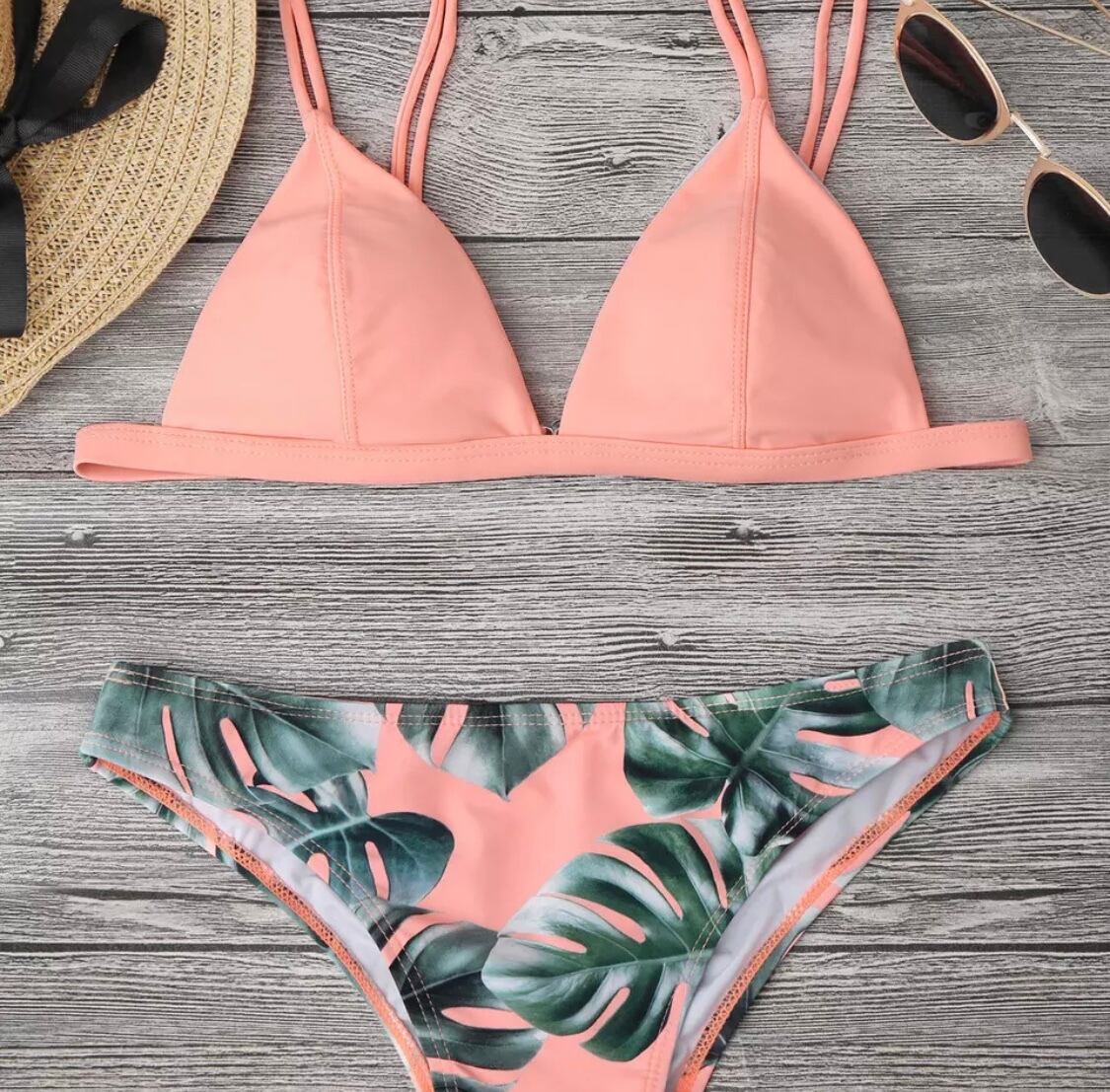 こちら海外インポートのプチプラリーフ柄ビキニセットです。