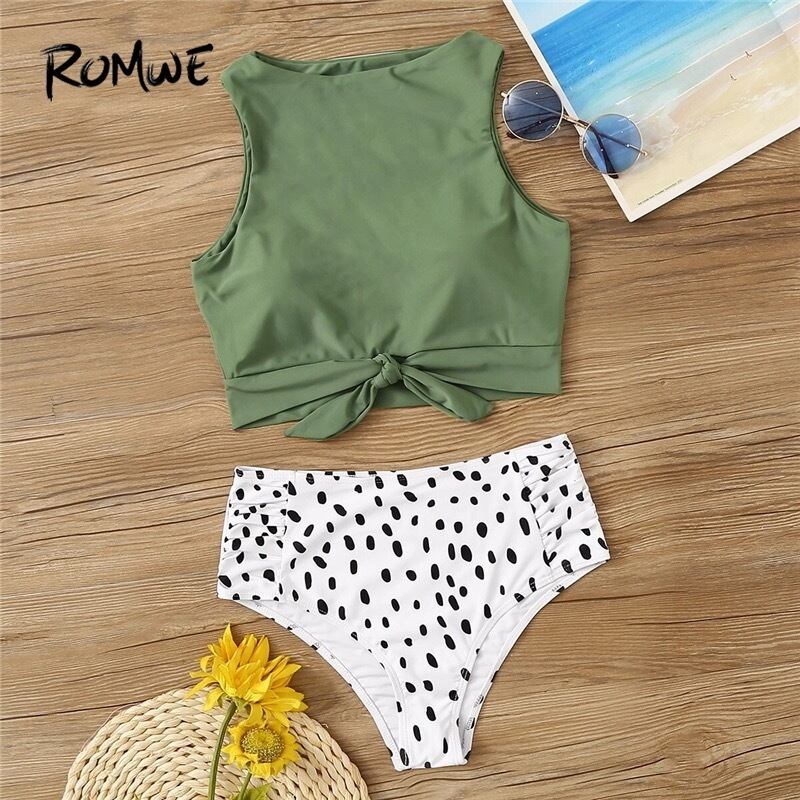 S210 フロントリボンダルメシアンタンキニ水着 カーキ
