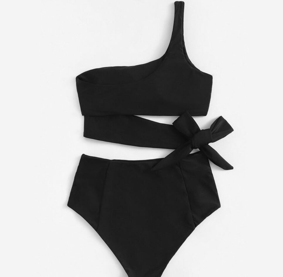 S215 ワンショルダーハイウエストビキニ ウエストリボン