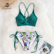 プリントレースアップビキニセット
