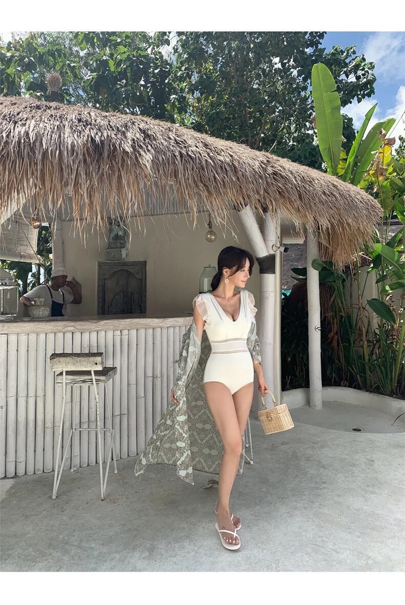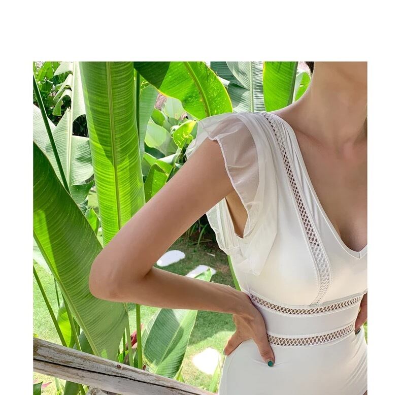 ホワイトワンピース水着 フリル袖